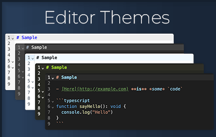 70+ editor themes, including VSCode, GitHub, and Sublime
